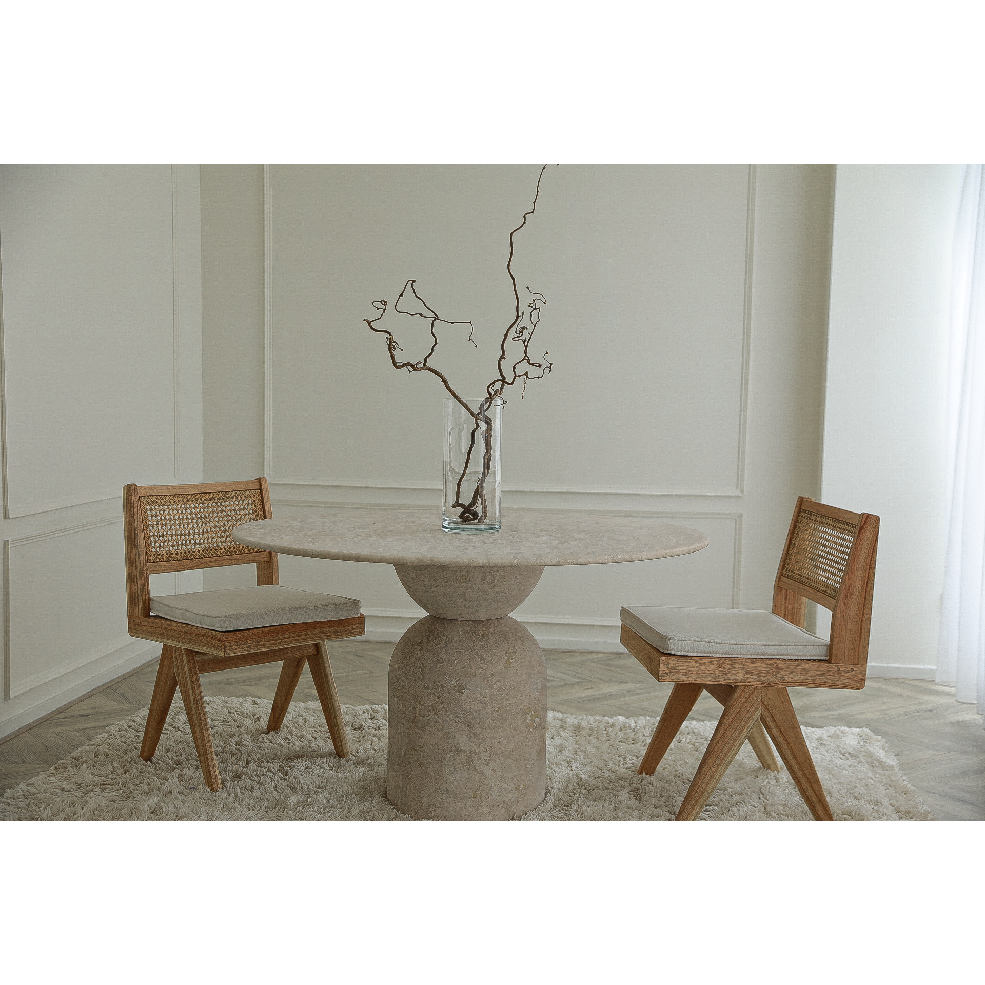Delivery within 6-10 weeks. The Tornado Travertine Round Dining Table showcases a striking Light Crosscut finish with distinctive Tornado design pa...